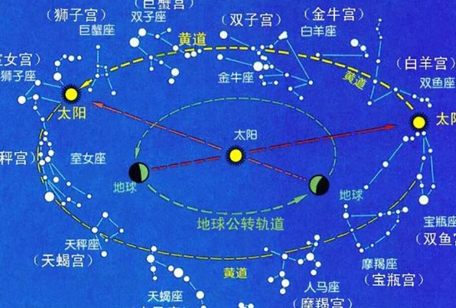 月球的軌道與黃道平面存在約5.1°的傾斜,其軌道在兩點穿過黃道平面,即升交點和降交點。地球的天赤道與黃道在天球上形成23.5度的夾角,這一夾角被稱為黃赤交角。天赤道與黃道在天球上相交于春分點和秋分點,而黃道上距離天赤道最遠的兩個點則稱為夏至點和冬至點。黃道與天球上的13個星座相交,這些星座被稱為黃道星座。其中,十二個星座因與占星術的緊密聯(lián)系而廣為人知,被稱為十二星座。