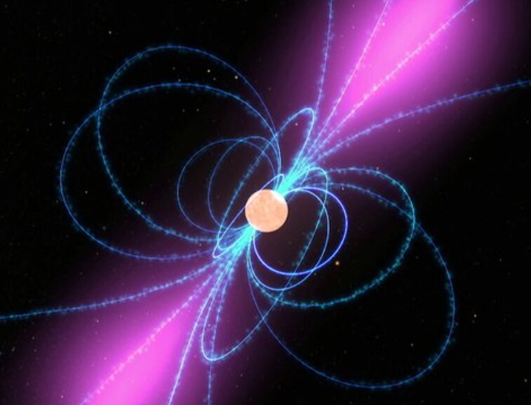 毫秒脈沖星的轉(zhuǎn)速之快令人驚嘆,最快者每秒可旋轉(zhuǎn)716次。按照這一速度計(jì)算,它僅需7秒鐘便能從地球到達(dá)月球。這種極高的轉(zhuǎn)速是由于墜落在其表面的來自環(huán)繞恒星的氣體使其旋轉(zhuǎn)起來,類似于落下的水讓水車旋轉(zhuǎn)的原理。然而,2012年德國科學(xué)家的一項(xiàng)研究顯示,在質(zhì)量傳遞結(jié)束后,脈沖星的磁氣圈(即其磁場捕獲帶電粒子的空間區(qū)域)將會膨脹,進(jìn)而減緩其旋轉(zhuǎn)速度。這一過程與旋轉(zhuǎn)的滑冰者伸出雙臂來減速的原理相似。如果沒有這一過程,毫秒脈沖星的運(yùn)行周期可能會變得更短,甚至不到1毫秒。