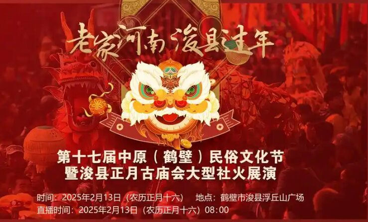第十七屆中原(鶴壁)民俗文化節(jié)是由鶴壁市人民政府主辦,于2025年1月15日至2月13日在河南省鶴壁市盛大舉行的一場文化盛宴?;顒右浴袄霞液幽稀た?h過年”為主題,旨在借助春節(jié)申遺成功的契機(jī),圍繞“春節(jié)、年味、民俗”主線,精心策劃一系列特色活動,全方位展現(xiàn)中原地區(qū)深厚的民俗文化底蘊(yùn)。